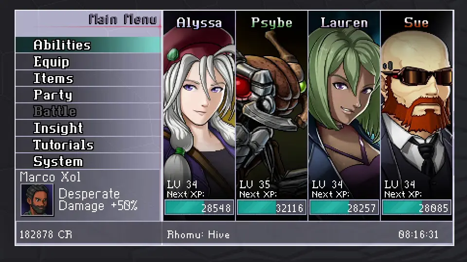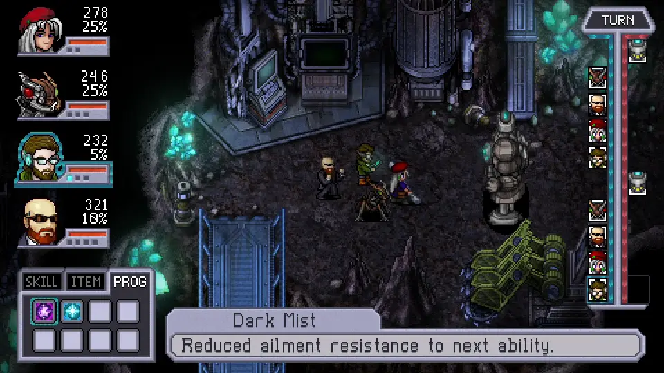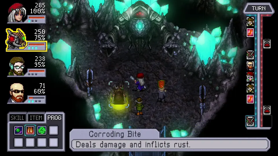 The turn-based system is unique in that you have certain amounts of skills you prepare before the battle, and you're only allowed limited use for each one. Another interesting aspect is how many playable character are there in Cosmic Star Heroine, and despite being short, the game manages to give them all strong personalities and character arcs.