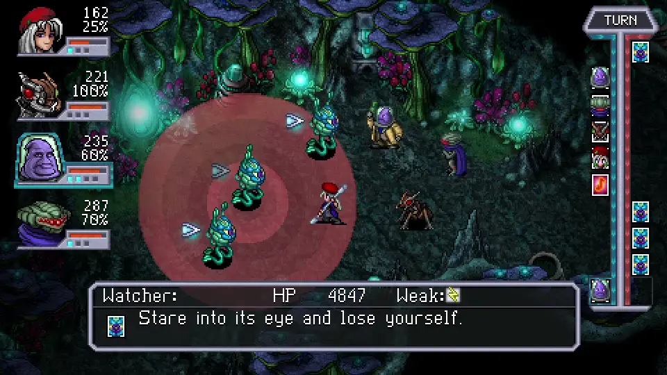 The turn-based system is unique in that you have certain amounts of skills you prepare before the battle, and you're only allowed limited use for each one. Another interesting aspect is how many playable character are there in Cosmic Star Heroine, and despite being short, the game manages to give them all strong personalities and character arcs.