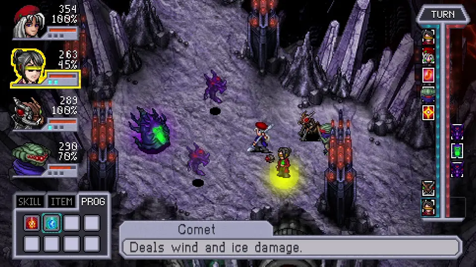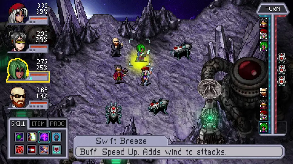 The turn-based system is unique in that you have certain amounts of skills you prepare before the battle, and you're only allowed limited use for each one. Another interesting aspect is how many playable character are there in Cosmic Star Heroine, and despite being short, the game manages to give them all strong personalities and character arcs.