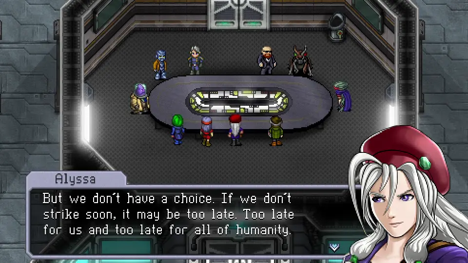 Cosmic Star Heroine is a turn-based RPG set on fictional planets on space with human and alien characters. The story features a nice cyberpunk-style pixel art. The story follows Alyssa and her friends as they unravel a galaxy-wide conspiracy. As a short JRPG-styled indie project, this game is around 12-18 hours long.