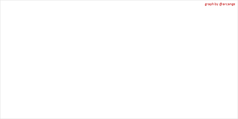This graph shows the evolution of HIVE virtual Supply. The virtual supply is the sum of HIVE supply (liquid and staked HIVE) and HBD supply (converted into HIVE).