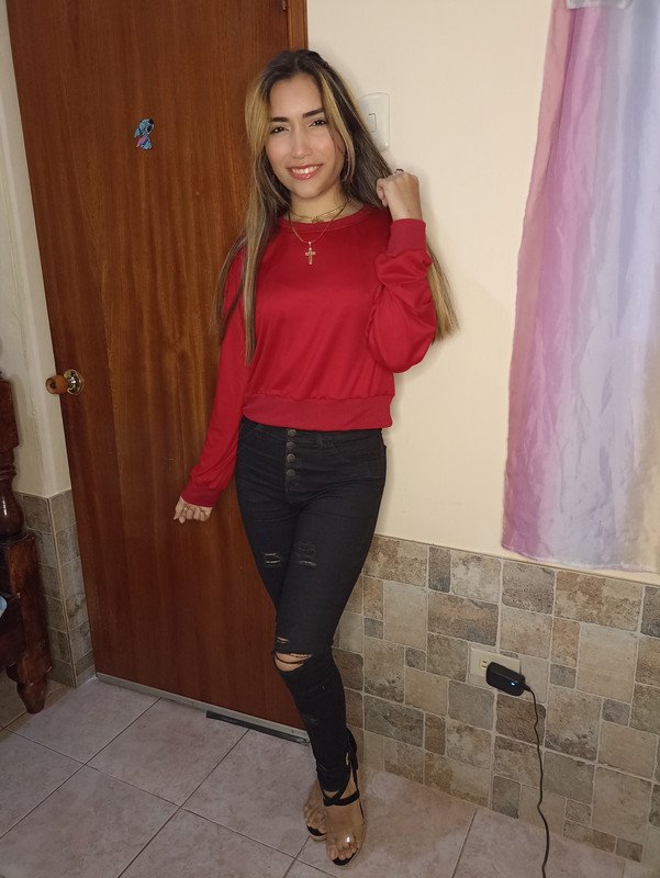 So I came up with a combination that I have used very little but for special occasions looks and looks great, and it is black with wine red. And the funniest thing of all is that I didn't like this color, but I can't deny that with black it combines very well and balances it, it doesn't look flashy or exaggerated, because the black color is in charge of doing all that work. To combine these two colors I chose to wear some sandals with black details and transparency, some gold and red accessories like earrings and necklace and ready, with my characteristic hairstyle with loose hair I feel ready, arranged and above all comfortable to share and celebrate one more year of life next to my loved ones.