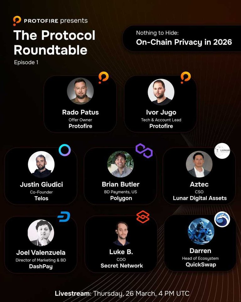 🥷Protofire:"#Crypto was built on the promise of #privacy. Most of it broke that promise. Tune in to our roundtable"[...]