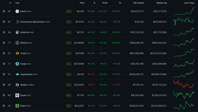 #dash is the up 25.2% in the last 24 hours recording the highest gains in Top 100 #crypto by a wide margin. They have been a great community on #hive.