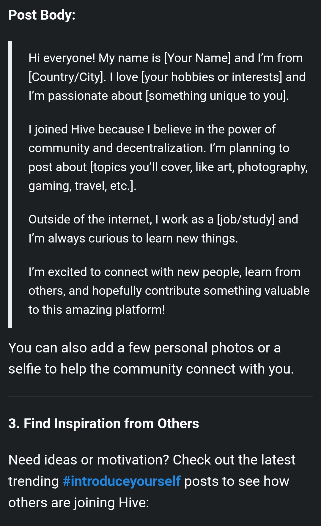 Get inspired to reveal a bit about yourself, make a post and publish it in the @ocd community. It's a community that welcomes and integrates new accounts. There you'll find dedicated onboarders who can help you grow, such as @livinguktaiwan and many others.