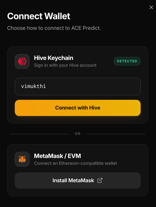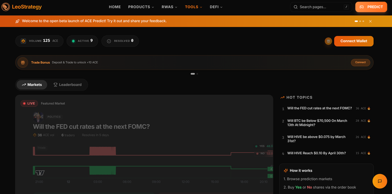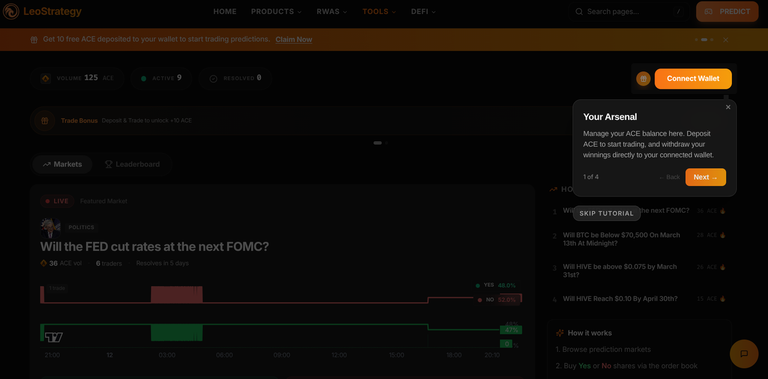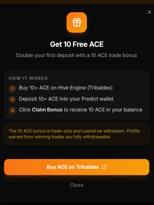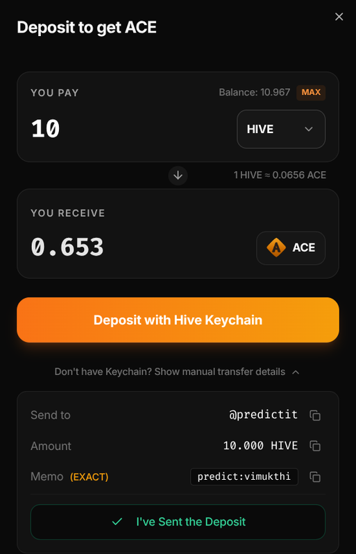 ACE is the stablecoin launched by @leostrategy team that use $LEO as collateral. The Presale is still ongoing and PredictIt brings in more demand for it. This is not a compulsory step. Anyone can get started with $HIVE or $HBD and they will have ACE in their account.