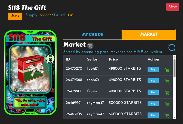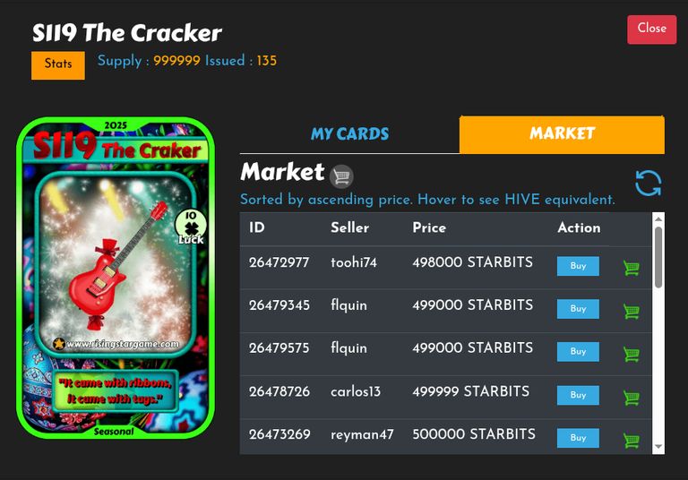 I decided to buy S117 The Grunge from Market this time. For some Missions, I try my luck with opening Booster Packs. During other times, I simply buy from the secondary market. We have multiple Markets for buying @risingstargame Cards. They all lead to the same assets with full transparency. This is the power of decentralization.