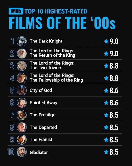 Justice has been made with "The Dark Knight" on top plus City of God at 5th thats a really nice addition, its been 17 years since The Dark Knight, I wonder if my older son has ever watch it?? he also watch a lot of movies on his own